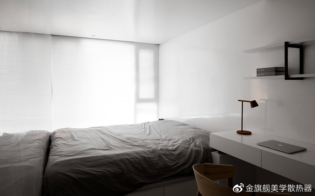 房间延续了主空间的灰白色调,设计师将业主生活细节和家居功能性合理的融入各个空间角落,让空间更具实用性及舒适性。