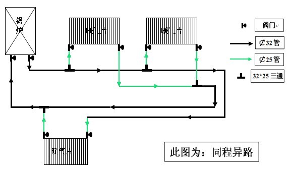 7、试压:关闭主管连接阀门,关闭散热器的进回水阀,用于压崩试压,实验压力应为散热器工作压力的1.5倍且不小于整个小区管网的实验压力,3-5分钟不渗漏合格。