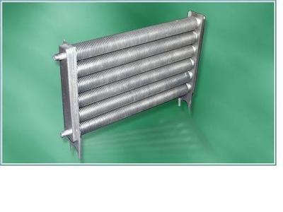 翅片散热器在翅片结构形上可分为绕片、串片、焊片、轧片.目前使用最广泛的是钢铝复合型翅片管,它利用了钢管的耐压性和铝的高效导热性能,在专用的机床上复合而成.其接触热阻在210℃的工作情况下几乎为零.钢铝复合管具有其它类翅片管散热器不可替代的优势.