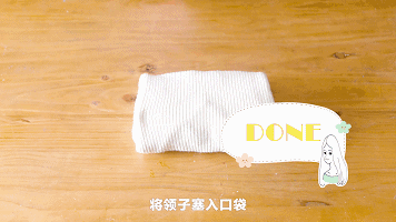 △把毛衣的左右两边往中间折叠,袖子直着叠,三分之一出做出口袋,塞进去即可。卫衣、羽绒服也可以用这种方法。