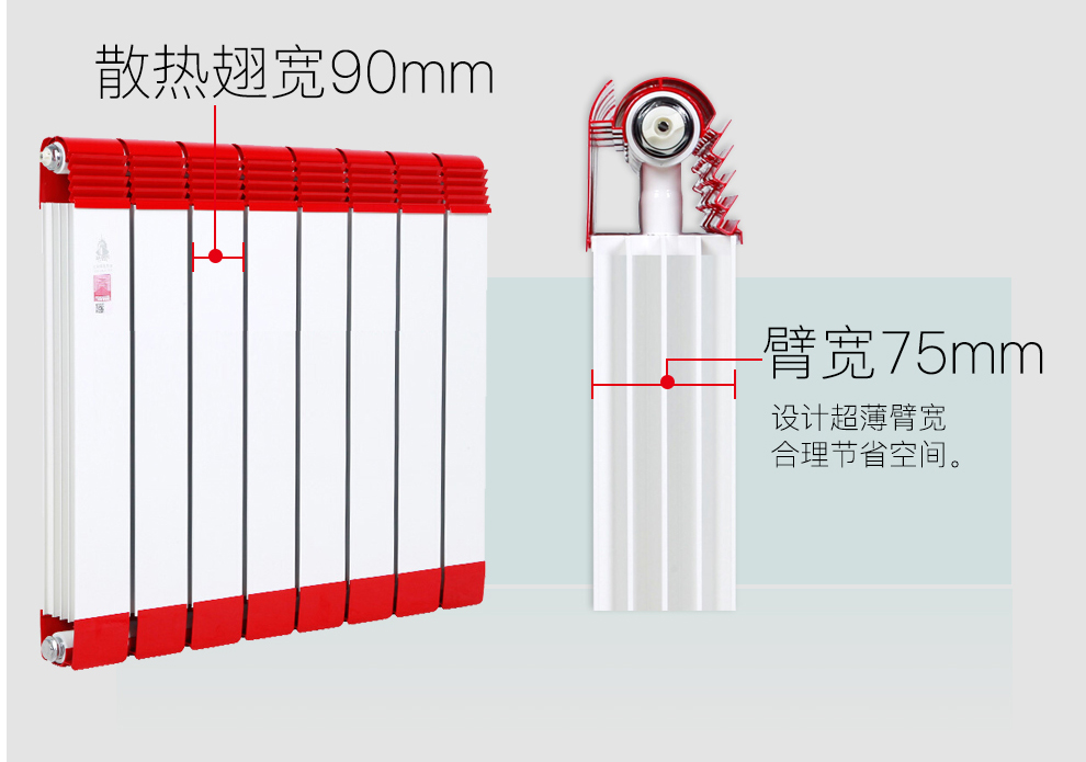 星欧注册成功自主研制出国内第一款集“环保、安全、防熏墙”三重功效于一体的产品——“防熏墙”系列铜铝复合散热器,该散热器增加防熏墙扣帽设计,独特的防熏墙原理设计,大大有效的杜绝墙面的熏黄与熏黑,对墙面的保护近乎完美,是品味一族的不二之选。同时它拥有大水道,大翅片,大散热量,稳重典雅的设计,通过千万道工序的审核。