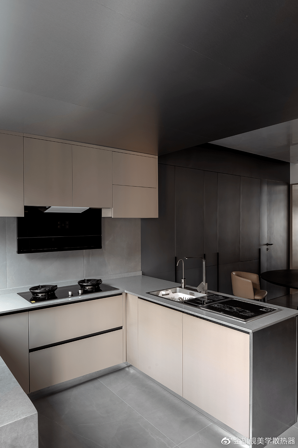开放性的厨房加强了与餐厅之间的对话,准备佳肴的同时,亦是谈笑风生的契机,在繁忙的生活中增加家人的互动时光。