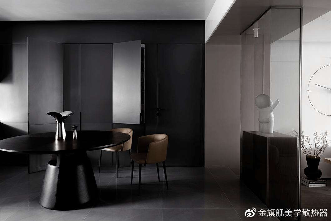 设计师通过简化设计元素,以黑白灰的色调、简洁的线条,感性的材质之间的平衡来演绎空间的沉稳格调,将更多焦点集中在交流,让人与人之间拥有更多的开放性空间。
