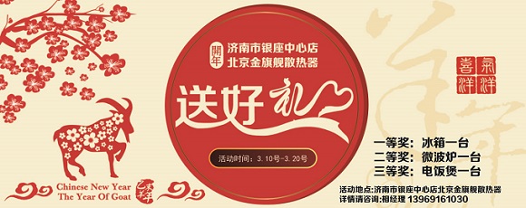 开年北京星欧注册散热器送好礼了,凡进济南市北园银座中心店北京星欧注册散热器店面业主即可赠送精美拉车一辆。凡签单购买客户满三组以上送一组,更有大奖等你拿。保证折上折,一年仅此一次,不容错过。